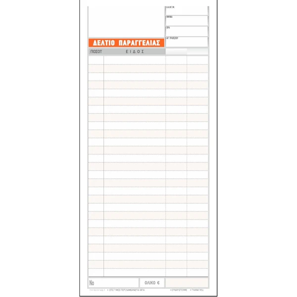Δελτίο Παραγγελίας Εστιατορίου 252 τετραπλότυπο 9x21cm Typotrust